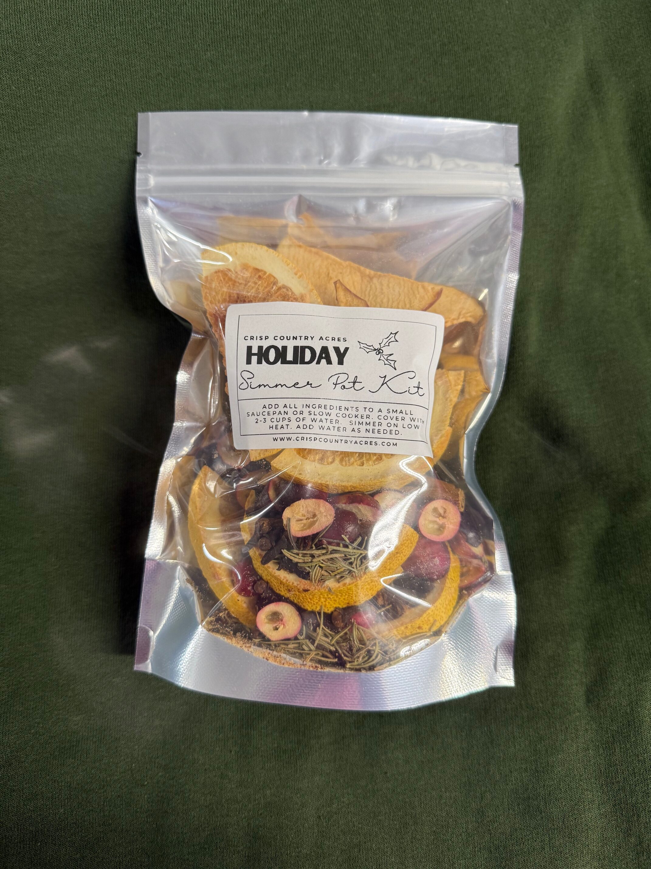 Simmer Pot Kits – Fill your home with the cozy scents of dried oranges, lemons, cranberries, rosemary, cinnamon, and cloves. No candles needed.