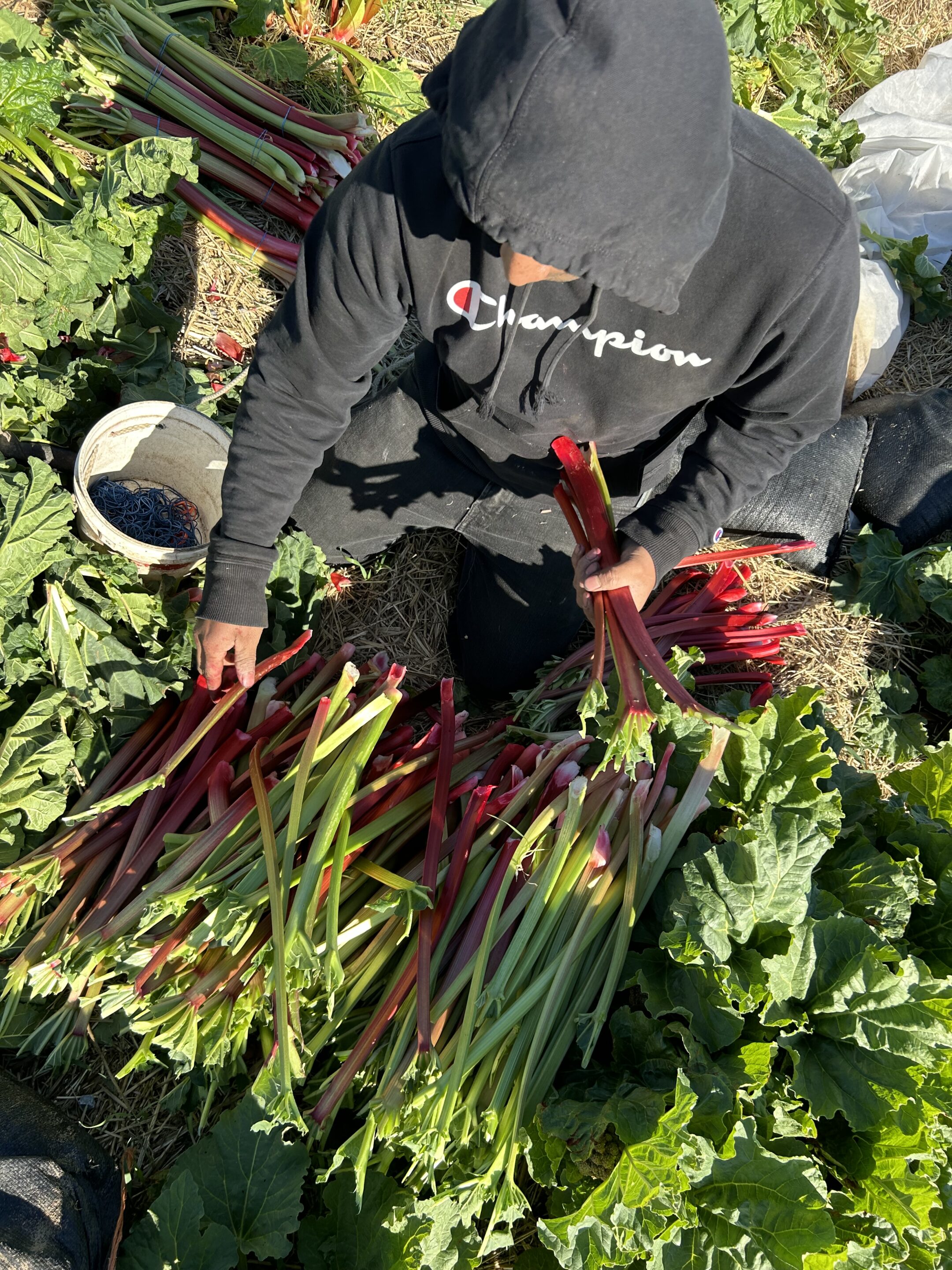 Harvesting fresh Rhubarb last spring.  We typically start with Rhubarb late April.